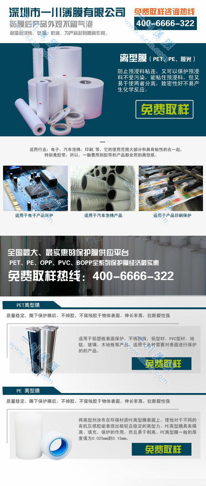 摘要:離型膜根據材質分為:OPP、PP、PET、PE、PVC、PP合成紙等。在PET、PE薄膜上涂布一層硅油就是離型膜,離型膜一川薄膜【400-6666-322】一般是單面的,其配方不同離型的力度不同。經過儀器測試出其離型的度數。如15G、25G至80G不等,數值越小離型力越小,反之則大、手工測試輕重的方法是:取一款相同的膠紙,分成幾份不同的離型膜和膠各互相貼合,施加相同的壓力,用手去進行剝離試驗,仔細感覺拉力的大小輕重。剝離用的力度大的就是離型重,反之則輕。